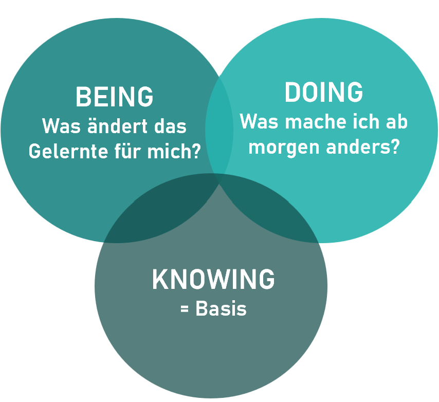 Klar, Wissen und Wissensvermittlung bilden die Basis. Sonst gibt es nichts um zu reflektieren, hinterfragen und in den Alltag zu transferieren. Und Wissen ist gerade in diesen Zeiten, wo Meinungen als Wahrheit verkauft werden, immer wichtiger. Aber reiner Vortrag, Folienschlacht, Berieselung: NO WAY!
